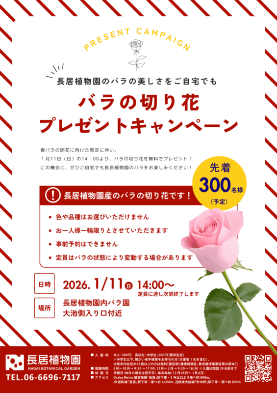 1月11日(日)の14:00より、バラの切り花を無料でプレゼント!