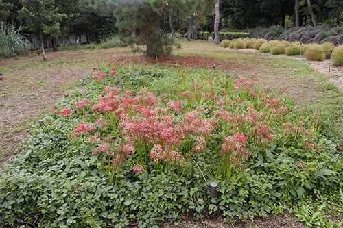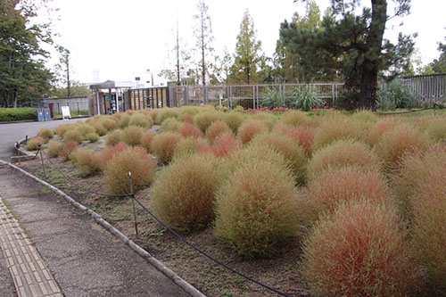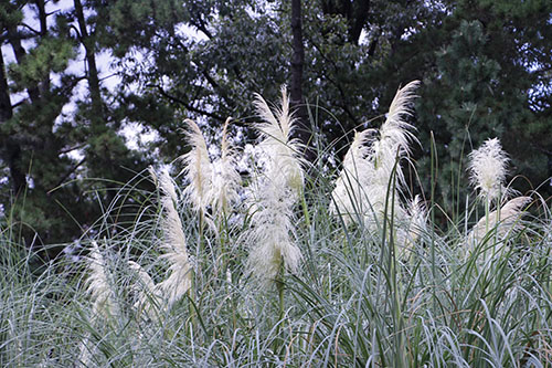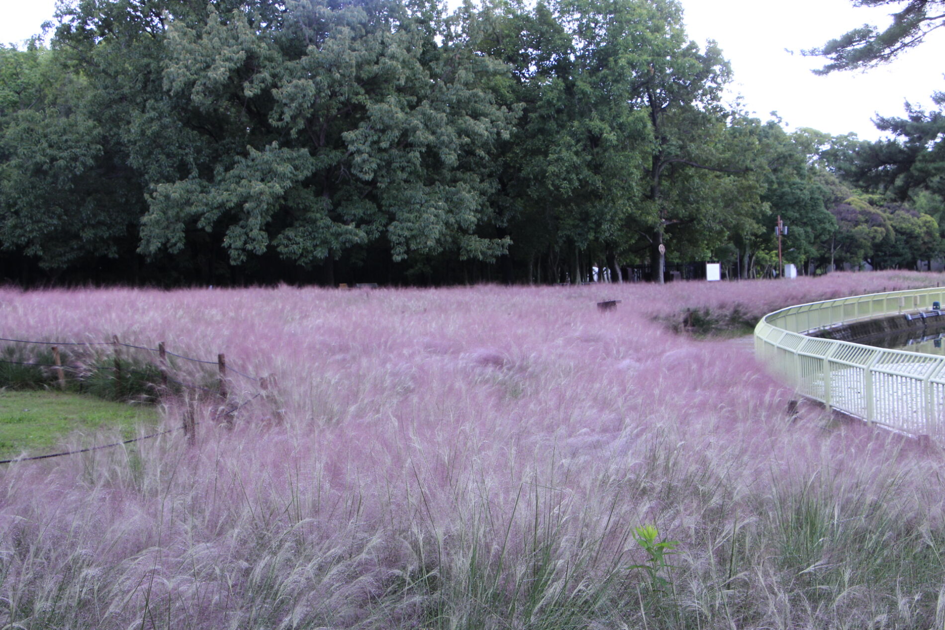 ミューレンベルギア・カピラリス、パンパスグラス、タカノハススキが見頃を迎えています。