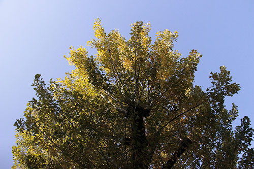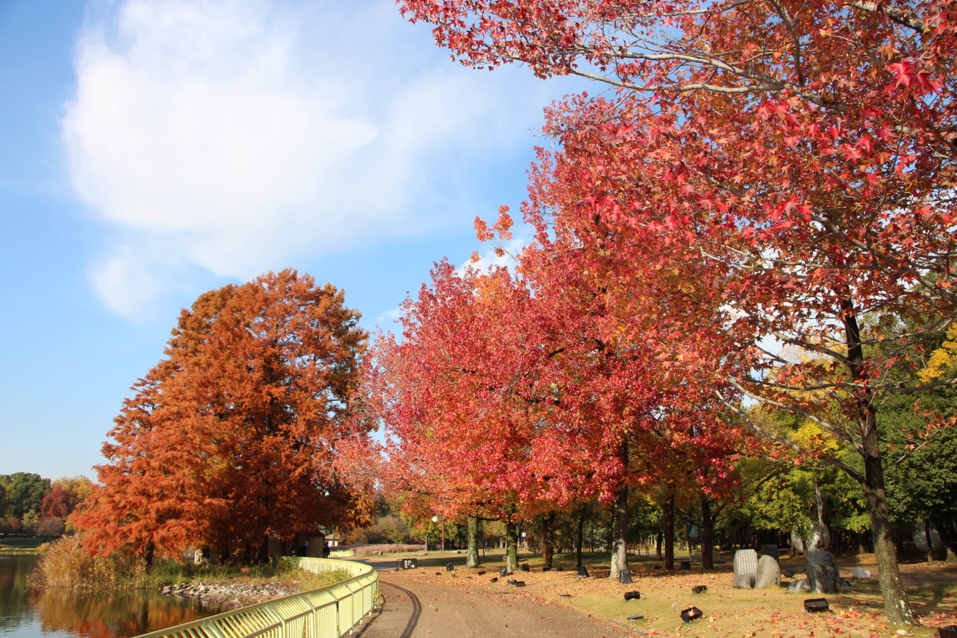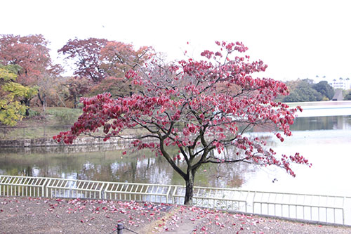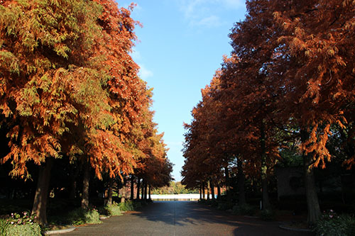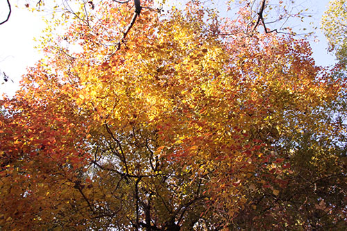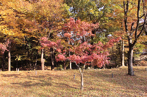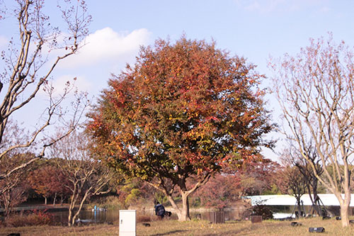 イロハモミジ、カロリナポプラ、モミジバフウ、ラクウショウが紅葉の見頃を迎えています。
