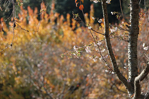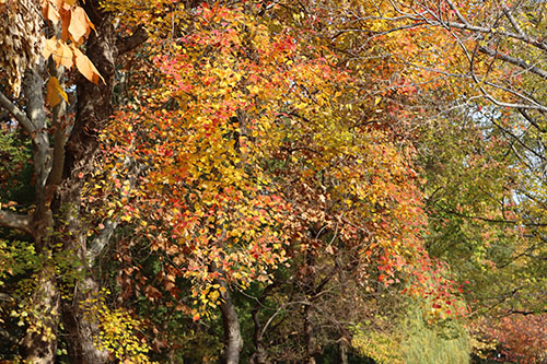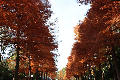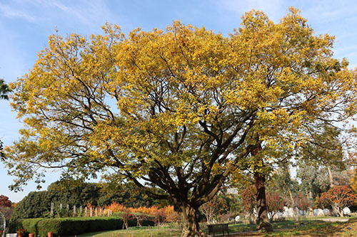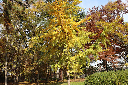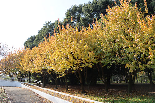 イロハモミジ、イチョウ、カロリナポプラ、ラクウショウが紅葉の見頃を迎えています。